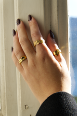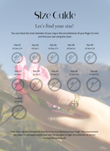 Use a string and wrap around the finger you want the ring to fit, after that measure the length with a ruler. Then match it with the size chart to discover your size